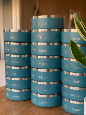 Custom 2L Dawn dog bowls to keep campers pups hydrated during their stay